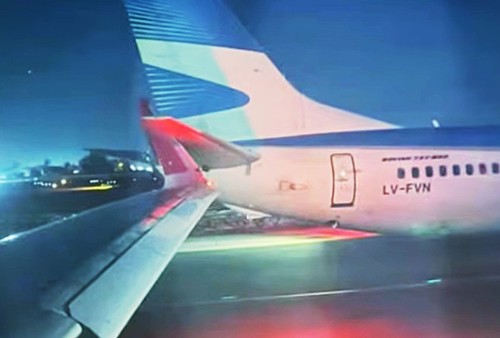 En un insólito choque, un avión de LATAM se llevó puesta una de las alas de un avión de Aerolíneas...
