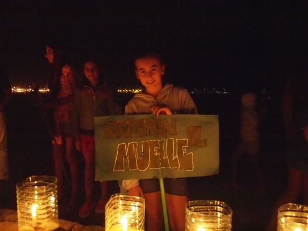 Empezaron a llegar temprano, cuando aun no se había puesto el sol. Familias, matrimonios mayores, grupos de amigos, abuelos con nietos. Todos querían ayudar de alguna manera, colocando los improvisados fanales, prendiendo las velas, juntando firmas. Todos los allí presentes sentían este pequeño muelle como suyo, querían ser parte de esta silenciosa manifestación. Muchos trajeron sus velas y sus ganas de compartir historias que tenían este lugar privilegiado como escenario.