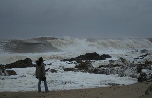 La playa se extiende inmensa para nosotras dos. El mar embravecido de un color gris plomizo no invita a bañarse, sino que impone un sobrecogedor respeto. Nuestras huellas nos siguen, son las únicas en la playa, las olas barrieron los rastros del paso de otros seres. La playa es toda nuestra, somos las dueñas y señoras del lugar. Compartimos nuestro provisorio reinado con una bandada de gaviotas y eventualmente hacia el fin de nuestro paseo, nos topamos con un solitario pescador que espera el pique de esa elusiva corvina.