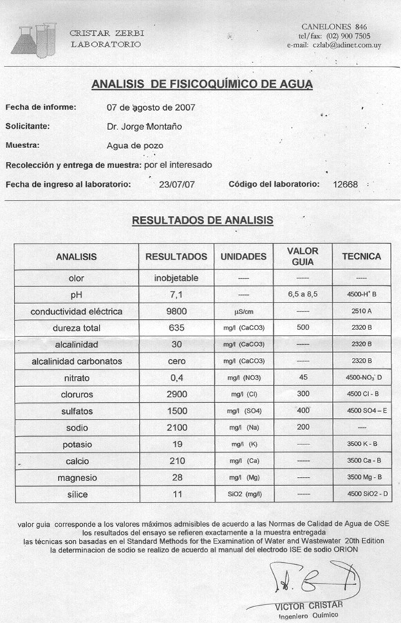 los resultados del ensayo se refieren exactamente a la muestra entregada las técnicas son basadas en el Standard Methods for the Examination of Water and Wastewater 20th Edition