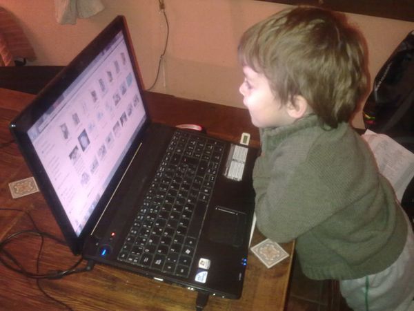 Si bien su madre trabaja en el aeropuerto y su padre también pasó por allí, a Thiago por el momento lo que le interesa es el Rayo McQueen y los Transformers, pero, ya se planta ante la compu.