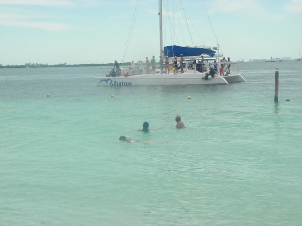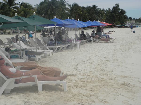 "Camine 5 minuts y llegará a Playa Norte, lamejor de todas", nos dijeron. Hicimos caso y llegamos con sed, una Margarita 60 pesos (dos, fueron 120, unos 10 dóalres) y la sombrilla con dos reposeras, 80 pesos, algo menos de 6 verdes,