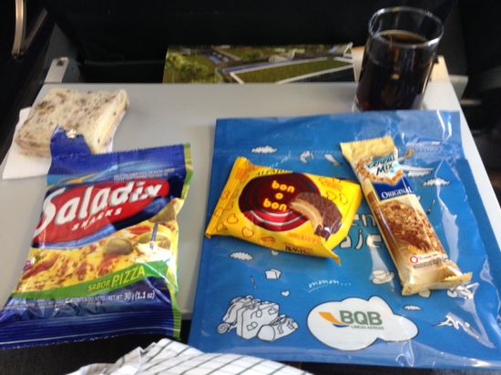 La ida y vuelta a Asunción la están cobrando casi 700 dólares, se vuela a mediodía y en vez de almuerzo, se sirve un "aperitivo" consistente en un pequeño sandwich, un sobrecito de snacks, una barra de cereales y un alfajor.