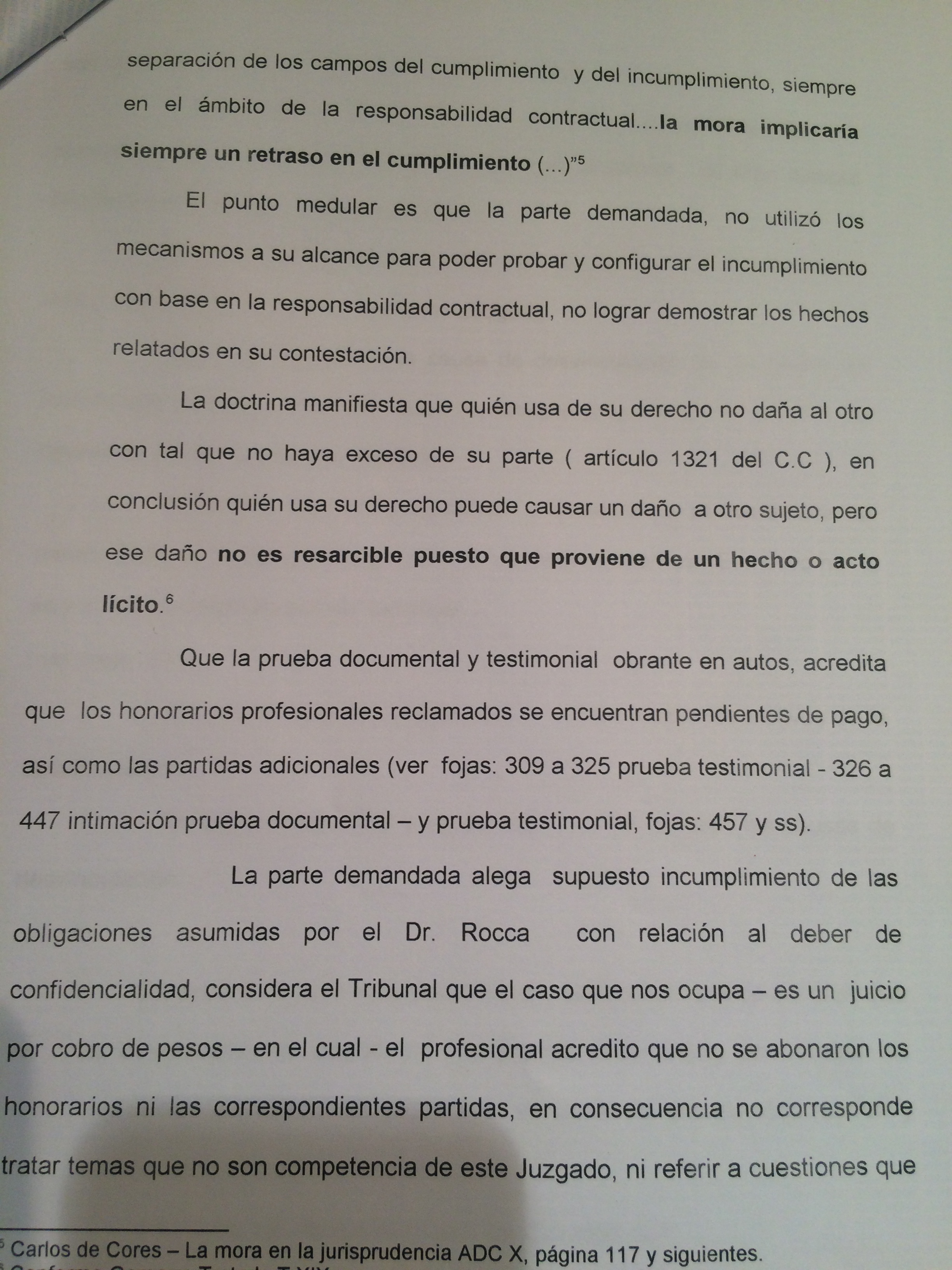 En archivos adjuntos el lector encontrará los documentos relacionados: el alegato presentado por el Doctor Rocca y también la sentencia de la Doctora Bello.
