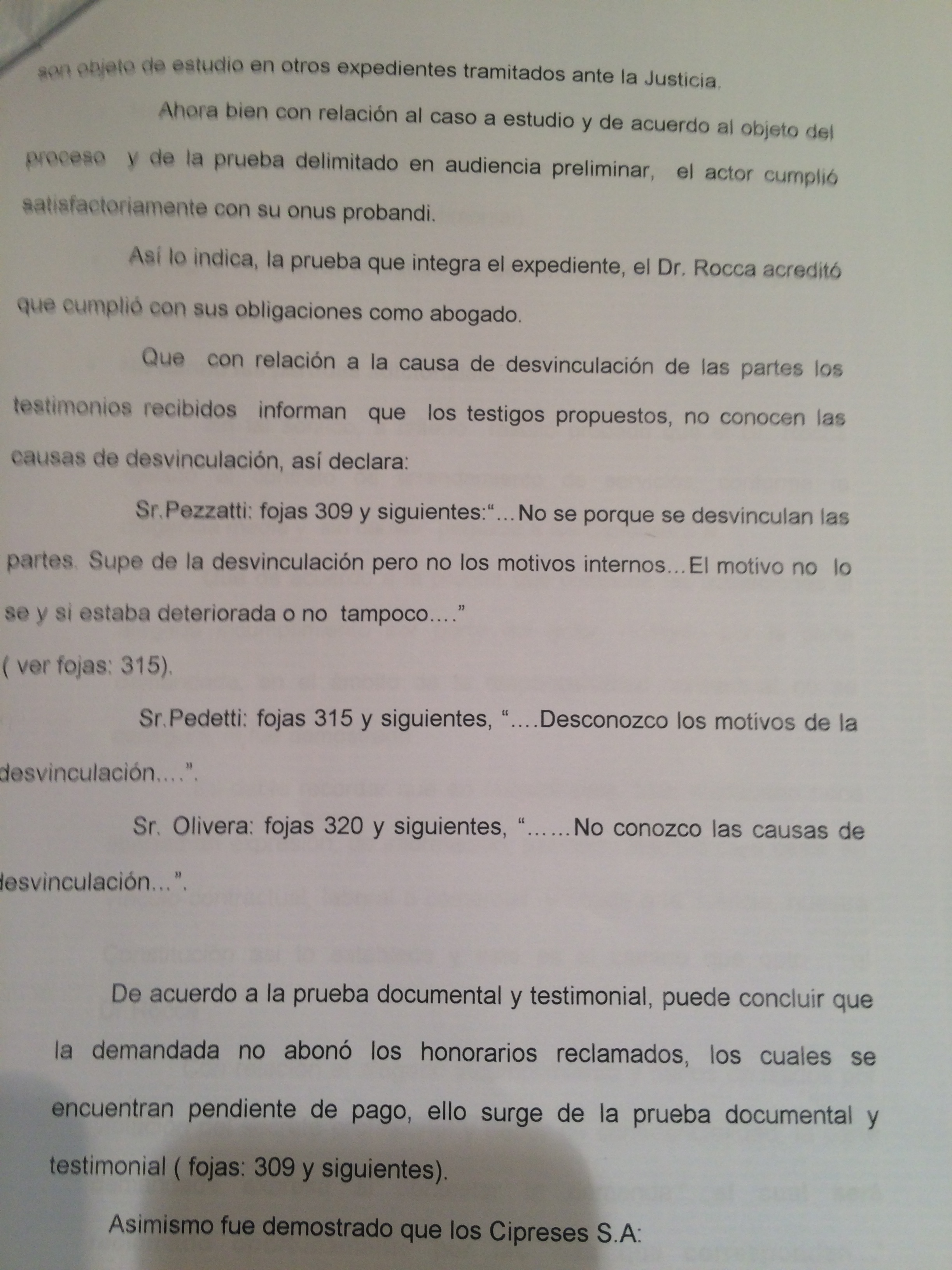 Los Cipreses SA condenada a pagarle honorarios al Dr. Rocca
