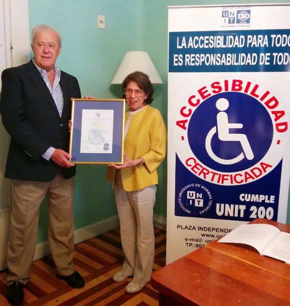 Culminó el proceso con la Certificación de Accesibilidad al Medio Físico, con respecto a la Norma UNIT 200 entregado por el Ing. Pablo J. Benia, Director de UNIT a la Directora del Argentino Hotel Renee Pereira.