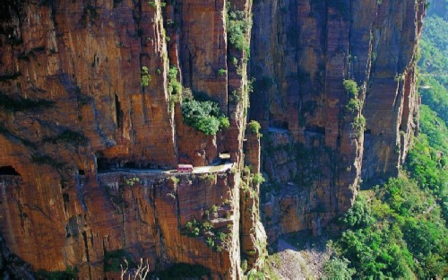 Situada en las montañas Taihanq, en el cantón de Hunan, los riesgos de esta carretera quedaron patentes ya desde su construcción, durante la cual murieron algunos de los trece lugareños que presuntamente la excavaron, en busca de una salida para su aislado pueblo, Guoliang.
