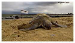 Y en la playa de Mailhos, también el martes apareció una tortuga verde (chelodia mydas), seguramente enterada de la pronta reparación del muelle y a manera de celebración. Fue rescatada por vecinos y llevada a Karumbe que se