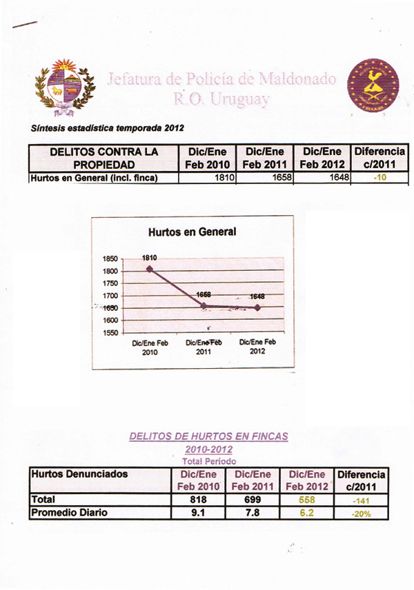 Estimado Sr. Antonio Herrera : Diariamente ingresamos al Portal, lo valoramos ampliamente por la profesional información turística. A los efectos que usted estime conveniente le adjunto la estadística de hurtos en las tres temporadas. Corresponden a la totalidad del Departamento de Maldonado. Con nuestra mayor consideración , Insp.Mayor Juan Balbis.