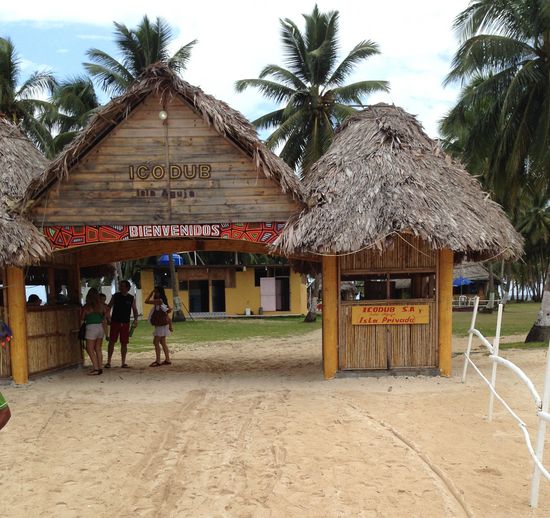 Ya en el puerto, pagamos 0,25 cada uno por el uso del baño, 20 dólares por persona por la travesía en lancha de 20 minutos desde Niga Kantule hasta La Aguja, la isla que elegimos como destino en donde al llegar, pagamos aproximadamente 5 dólares cada uno por el uso del lugar, 5 dólares por cada reposera, 5 dólares por la mesa y a pesar que hay carteles que indican no sentarse debajo de las palmeras, elegimos una como sombrilla y no nos cobraron nada...perdón, era parte de la isla, ya habíamos pagado.