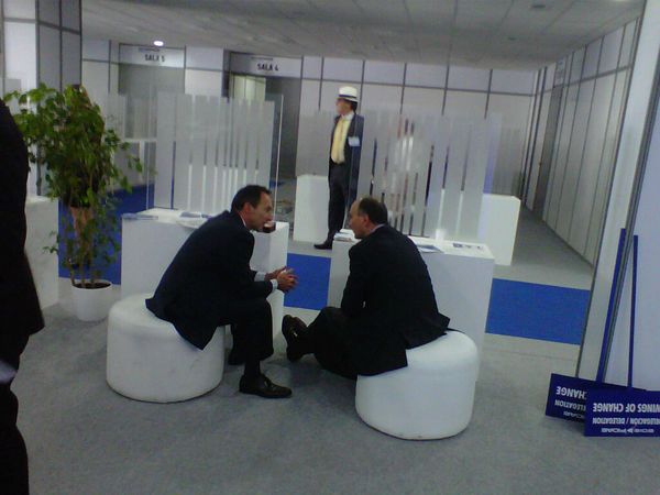 Después de la sesión de CEO´s de aerolíneas latinoamericanas, Matías Campiani (Pluna), dialoga animadamente." ¿Cómo estás?" nos preguntó más tarde. "Aprendiendo" fue nuestra respuesta, a la que replicó: "Acá siempre se viene a aprender".