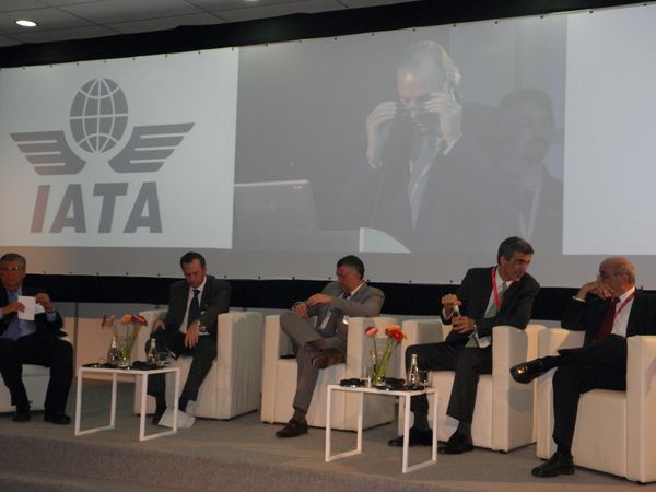Uno de los paneles más comentados de la Conferencia: el de las aerolíneas regionales. Fue moderado con excelencia por Gustavo Di Cío (primero a la izquierda) e integrado (de izq. a der.) por José Luis Garza, Interjet; Rafael Farías, TAME; Matías Campiani, Pluna y Horacio Angeli, Sol Líneas Aéreas.