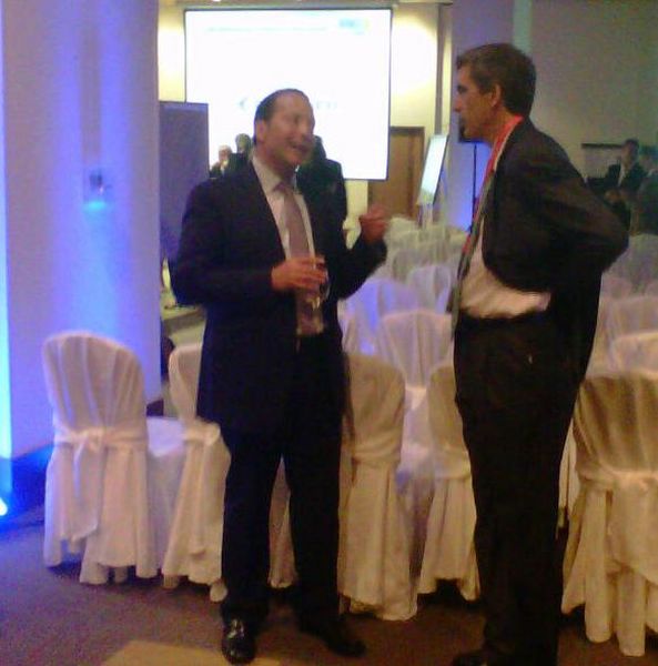 Aunque la imagen no es la mejor, primer diálogo de Pedro Heilbron, CEO de Copa Airlines, en el cierre del evento, anoche en el Intercontinental. ¿El interlocutor?, Germán Efromovich, el hombre fuerte de AviancaTaca. Le dijimos a Santiago García Rúa que estaba junto a nosotros cuando accionábamos el celular para tomar la imagen: "quien pudiera ser mosca para ponerse en el medio---".