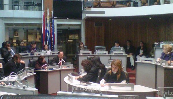 Luego fue el turno del Edil socialista Daniel Angulo quien dijo no haber conocido personalmente a Amestoy pero que sabía de su importante trabajo en los diferentes ámbitos del turismo y el transporte y que dada la importancia del turismo en el país, saludaba con mucho beneplácito la decisión de haber brindado este homenaje.