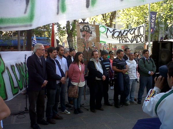 En pleno centro de Montevideo, en la Plaza Cagancha, comúnmente llamada Libertad, tuvo lugar un acto convocado por la central obrera uruguaya el PIT CNT y el sindicato de extrabajadores de Pluna. "Le decimos no a los empresarios que no reconocen organizaciones sindicales, seguimos  trabajando para construir una nueva empresa, hoy están acá presente los Reyes Magos, Papá Noel, pero también nuestros socios, estos son los trabajadores, las familias, la central y el pueblo", dijo César Iroldi, integrante de la mesa sindical de OTAU OFP. Al acto concurrieron, más de 200 afiliados, el Senador Eduardo Lorier, el Diputado Gustavo Bernini y el integrante del PIT CNT, Ismael Fuentes quien pronunció un mensaje directo al gobierno: