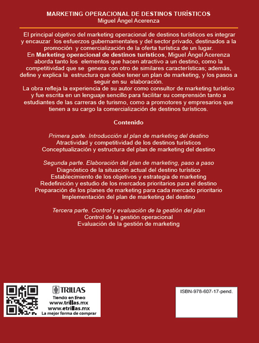 El Profesor Miguel Angel Acerenza, otro de los ilustrísimos compatriotas es sin dudas, el autor uruguayo más prolífico en textos sobre turismo y la mexicana Editorial Trillas sigue editando su obra y acaba de anunciar que Miguel autorizó la portada sugerida de la tercera edición actualizada y ampliada del libro Marketing Operacional de Destinos Turísticos, la cual como primicia, compartimos ilustrando este artículo.