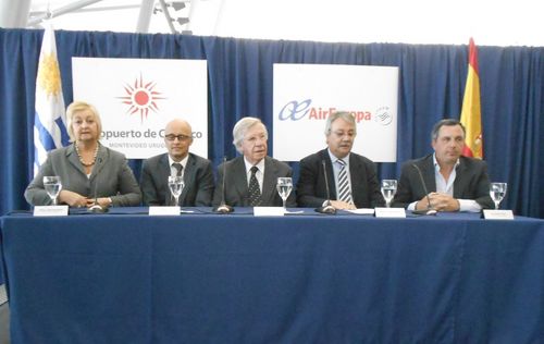 Luego hablaron todos los integrantes de la mesa, los Ministros de Turismo y de Transporte, Kechichian y Pintado; el Director de Air Europa, Richard Clarck y en nombre del gobierno, el Presidente en Ejercicio, Contador Danilo Astori. Lo más destacado fue por un lado lo que dijo Clarck con respecto a índices de ocupación. El avión llegó con el 90% de su capacidad colmada y que para junio la media está algo arriba del 70% y que el objetivo es llegar en verano europeo a promediar el 80%. Por su parte el Ministro Pintado destacó el gran apoyo de la DINACIA por intermedio del Brigadier Alarcón, su director.