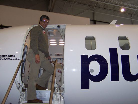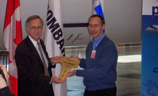 Campiani recibe simbólicamente  las llaves del primer CRJ900 de Bombardier
