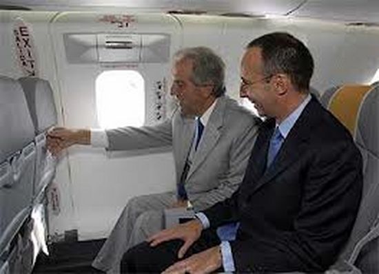 El 24 d emarzo de 2008, presentación oficial del primer avión y el Presidente Vázquez con Campiani