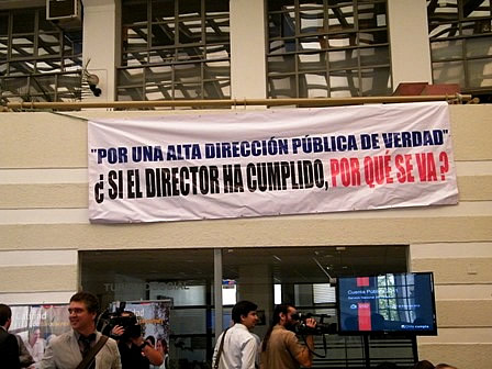 El martes 17, cuando Castilla terminó de presentar su "Cuenta Pública", acto al que no asistieron ni el Ministro mencionado, ni la Subsecretaria Jacqueline Plass, los funcionarios del SERNATUR, desplegaron una pancarta que decía: “Por una alta dirección pública de verdad”: ¿Si el Director ha cumplido, por qué se va?.
