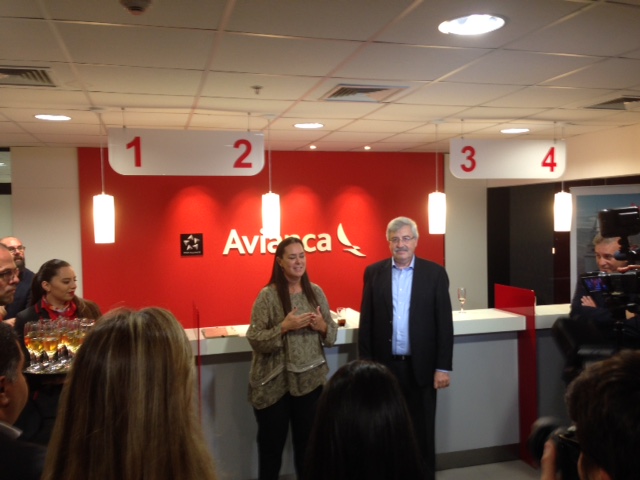 Para cerrar una jornada tan memorable, se brindó una recepción en las oficinas del World Trade Center donde se le hizo entrega por parte de la Gerente Comercial de Avianca en Uruguay Carla Calvete y del Asesor Legal Doctor Daniel Labruna de un presente a Silvia Mosquera, consistente en la imagen de la publicación en el Diario Oficial de la autorización de la frecuencia por parte de la autoridad aeronáutica uruguaya.