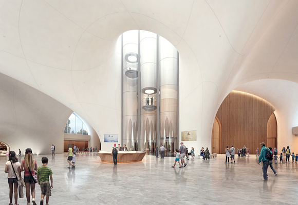 En total, el complejo tendrá unos 28.000 metros cuadrados, de los que 9.000 serán para la exposición principal, cubiertos por techos blancos de formas onduladas, como las que Zaha Hadid nos enseñó a amar. Como todo moderno museo que se precie, tendrá aulas de enseñanza, sala de teatro, restaurantes (espero que alguno en la parte alta) y comercios donde poder comprar algún que otro recuerdo, obviamente no podrá faltar un aparcamiento subterráneo para 2.425 automóviles (no sabemos aún si cabrán aeronaves).