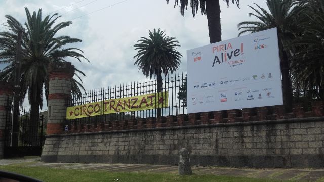 El frente del predio del castillo a la ruta 37. El Circo Tranzat se quedó por el evento, hacía una función al día, "a la gorra". El sábado hizo 3 funciones a lleno total, 900 personas, ese día en Piriápolis todo sumaba.