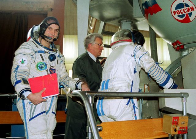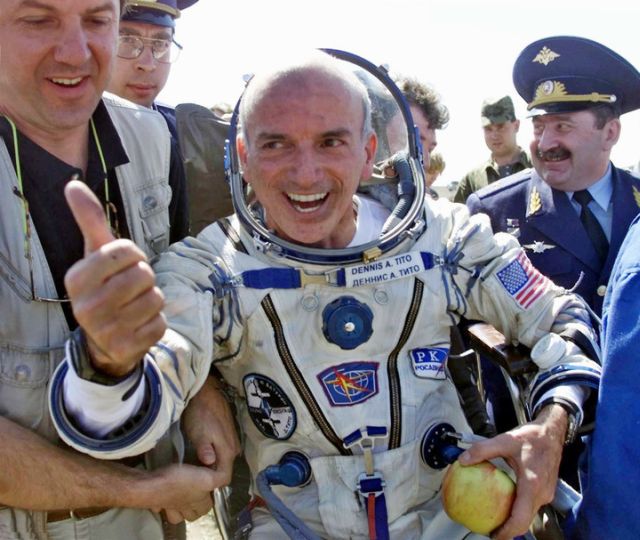 El millonario Dennis Tito,. el primer turista espacial enviado por Rusia a la EEI en 2001.