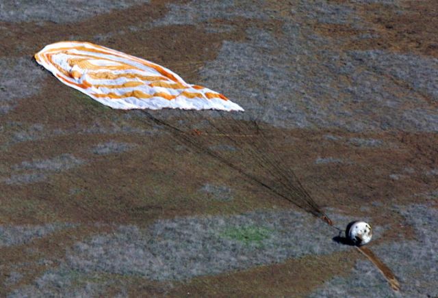 El regreso de Dennis Tito a la tierra, después de la primera travesía turística al espacio.