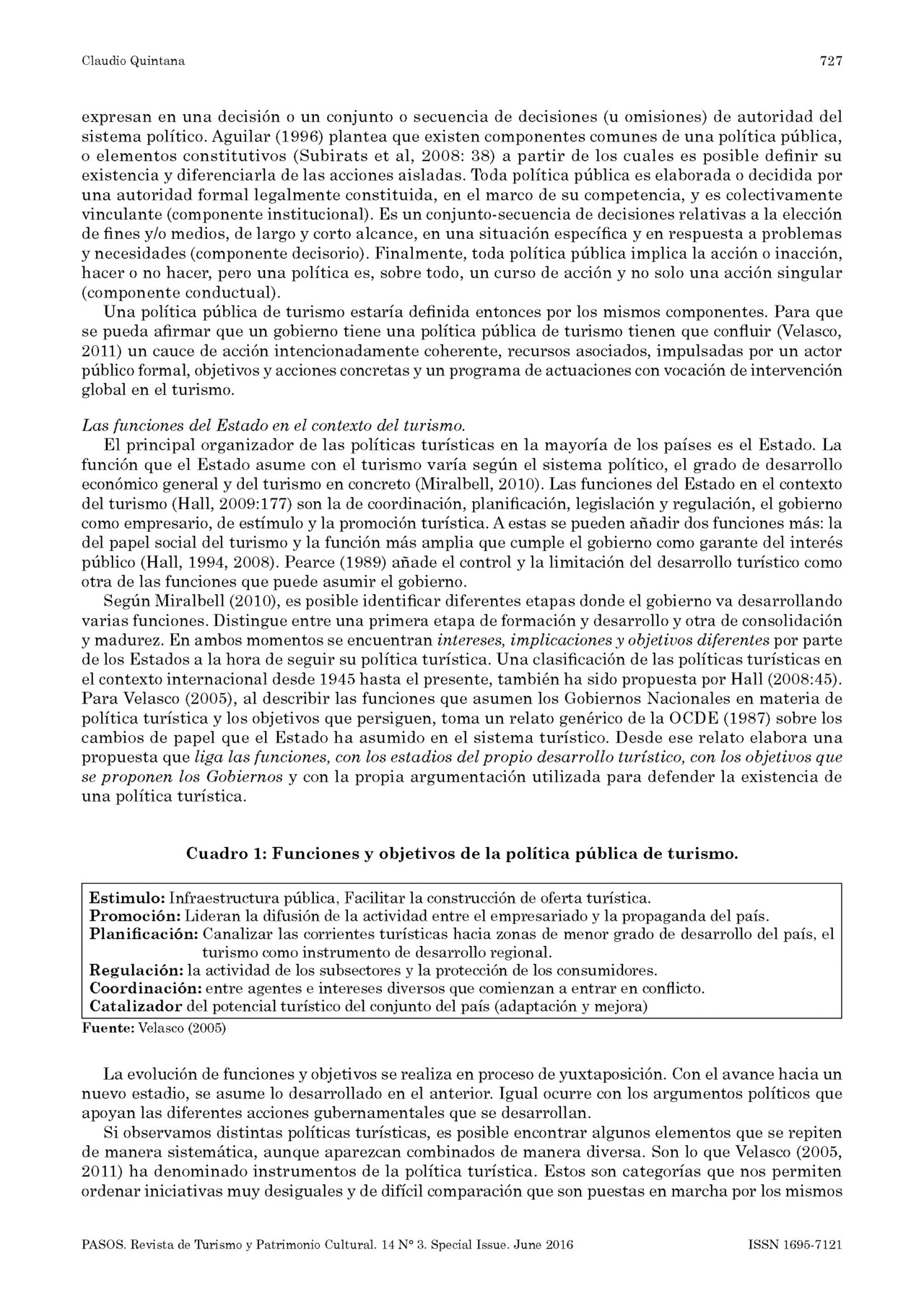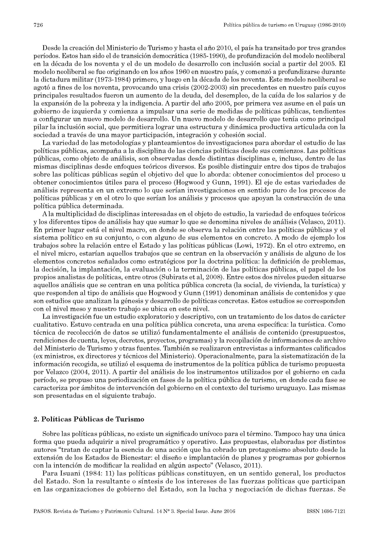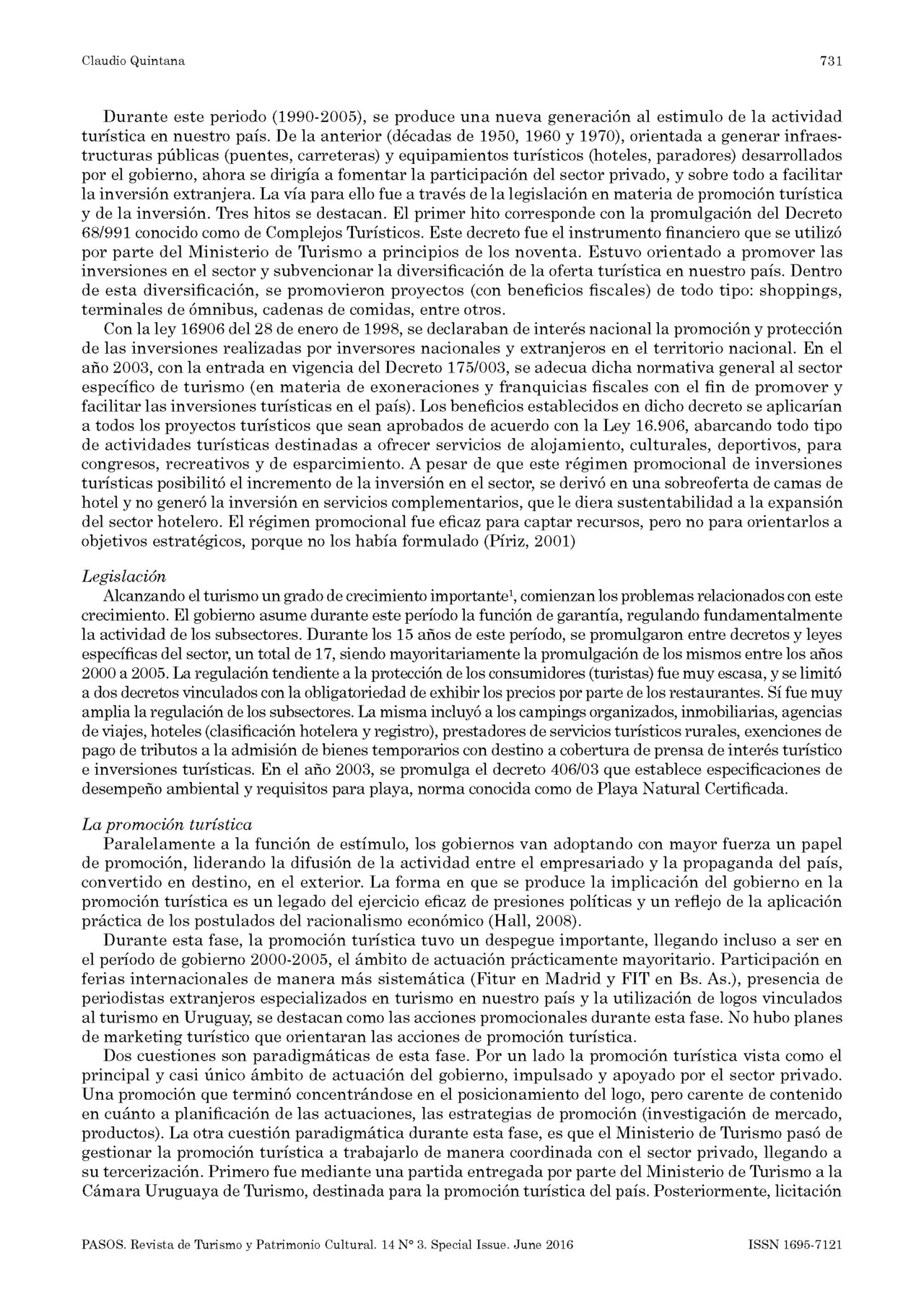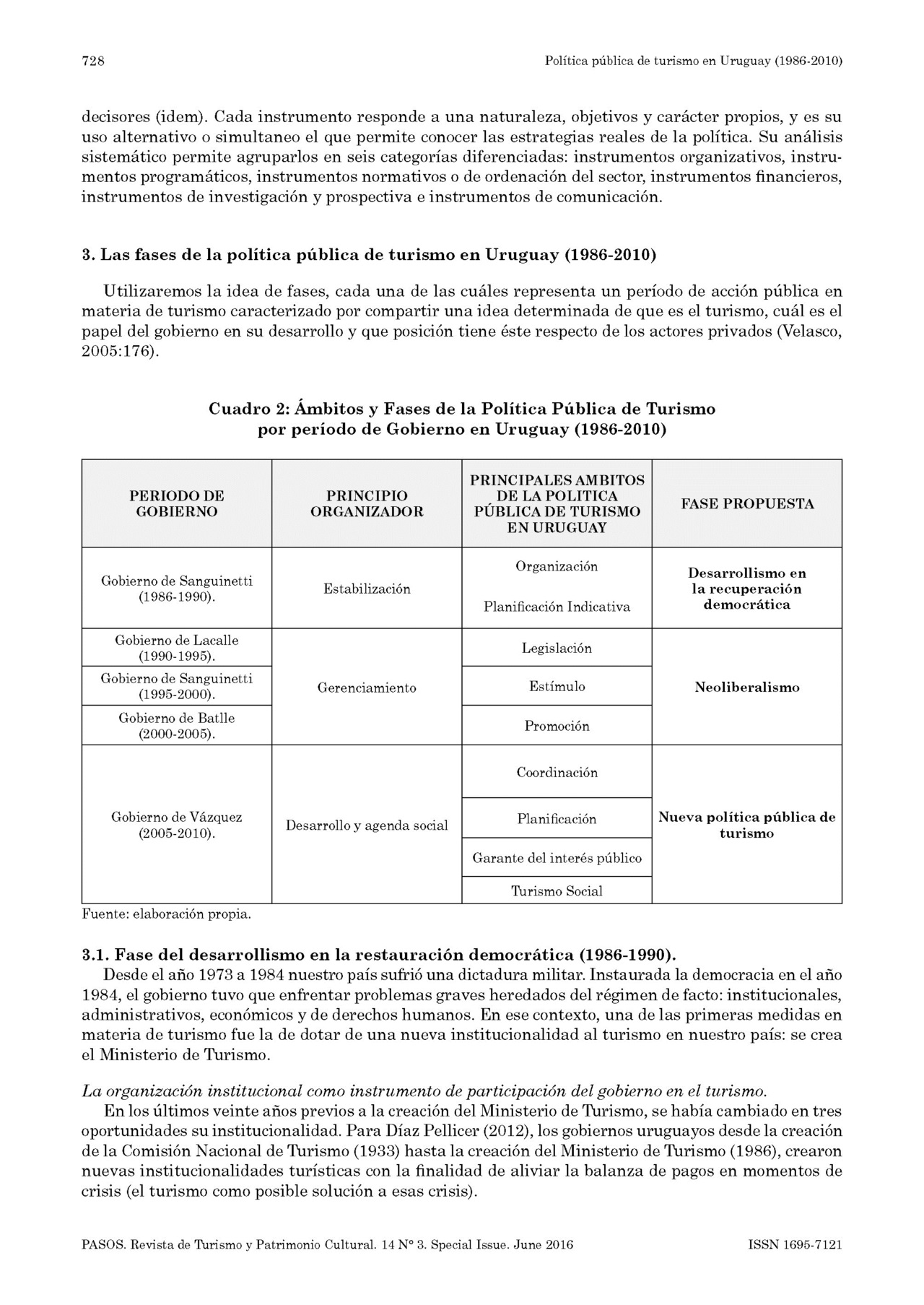 Accedimos a una publicación en la revista PASOS, señalada como Vol. 14 N.o 3. Special Issue Págs. 725-736. 2016 con el título Política pública de turismo en Uruguay (1986 -2010) Claudio Quintana* Ministerio de Turismo (Uruguay). El resumen que encabeza dicho trabajo dice textualmente: "En el presente artículo se describe y analiza la evolución de la política pública de turismo en Uruguay de los últimos veinticinco años, desde la creación del Ministerio de Turismo en 1986 hasta el 2010. Se describen los diferentes instrumentos de la política pública de turismo utilizados en cada período de gobierno y se analizan las funciones que asumió el estado en el contexto del turismo. Finalmente se procede a una periodización de su evolución, estableciendo tres fases de la política pública de turismo: del desarrollismo durante la recuperación democrática (1985-1989), del neoliberalismo (1990-2004) y el de la nueva etapa de la política pública de turismo (2005-2010). Se utilizó el Método de Análisis de las políticas y en particular el desarrollado para el caso del turismo por la investigadora española María Velasco González". Compartimos la publicación.