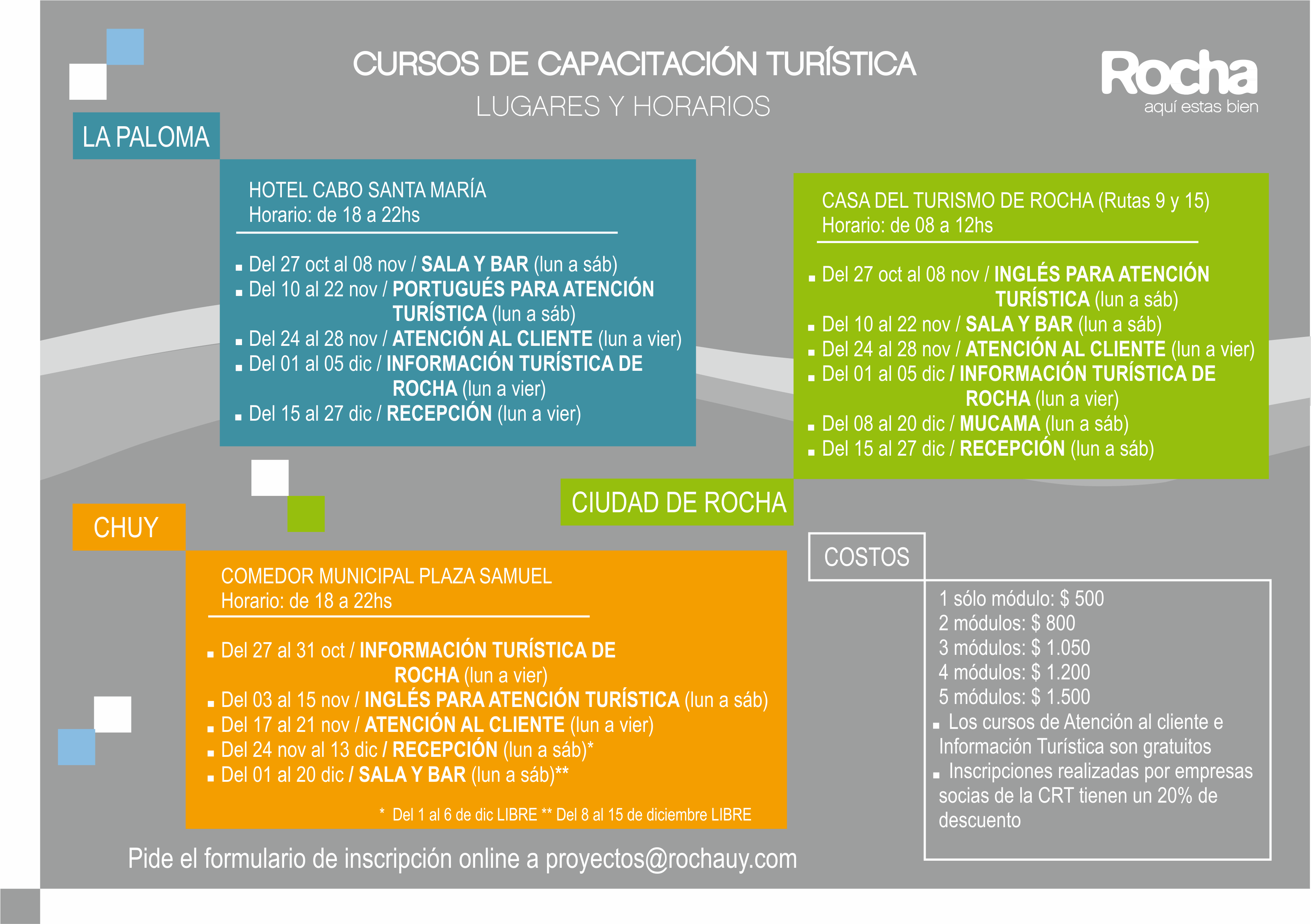 La Organización de Gestión de Destino (OGD) Rocha realizará cursos de Hotelería, Gastronomía y Turismo destinados al personal operativo y mandos medios de las empresas de las instituciones que la conforman.