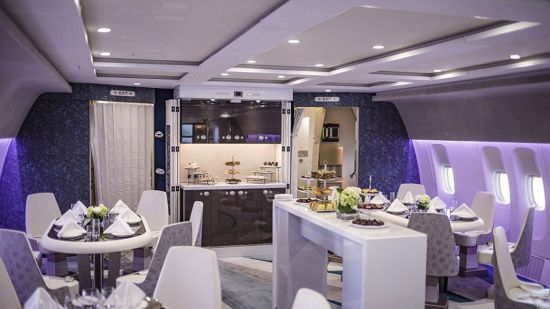 Es tan exclusivo que tiene la proporción más alta de tripulantes por pasajero del mundo y puede volar hasta 19 horas y media sin hacer una parada.