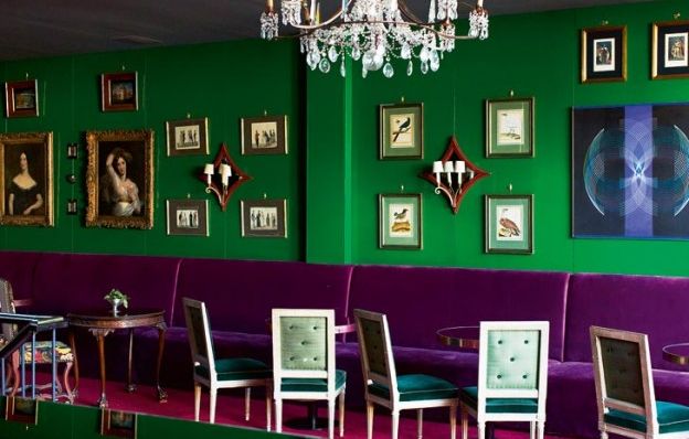La ambientación con grandes lámparas, pesados cortinados, mapas antiguos y obras de arte, es realmente impactante, teatral y sofisticada.