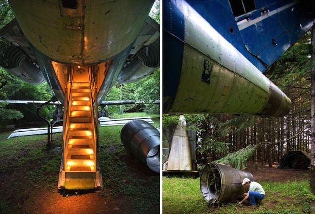 Así fue como compró el 727 retirado por alrededor de 220.000 dólares (la mitad empleada en remodelar ala y cola). El hombre se lo trajo por mar desde Japón a Portland, y de ahí a esa zona perdida donde tiene su terreno.