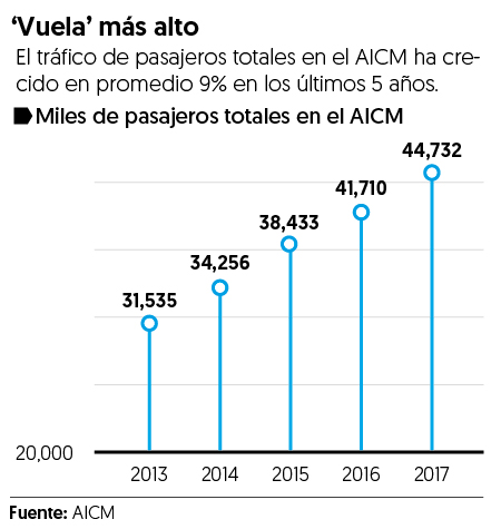 La Asociación Internacional del Transporte Aéreo (IATA, por sus siglas en inglés) estima que para 2036 se muevan anualmente 7.8 billones de pasajeros mundialmente. El año pasado se movilizaron 4 billones de viajeros a nivel internacional.