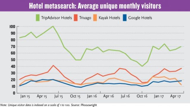 Los viistantes únicos de Google Hotels aún están lejos de TripAdvisor o Trivago