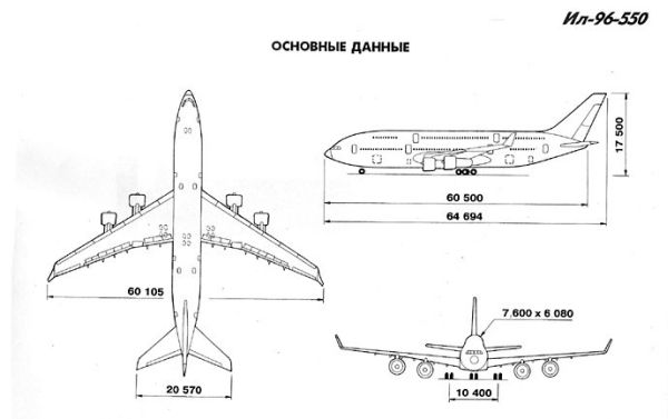 En la historia de la Unión Soviética y la posterior Rusia, tres modelos intentaron ir para el mismo lugar: el del Superjumbo de 500 pasajeros o más. Como un desprendimiento del exitoso (para los estándares del comunismo de entonces) Il-96, existió la intención de crear un avión que compitiera en el mercado mundial con la misma configuración de doble cabina que el A3XX y los demás. Para ser más atractivo al mercado occidental, se ofrecería la posibilidad de equiparlo con motores Pratt & Whitney. Por problemas de financiamiento, no