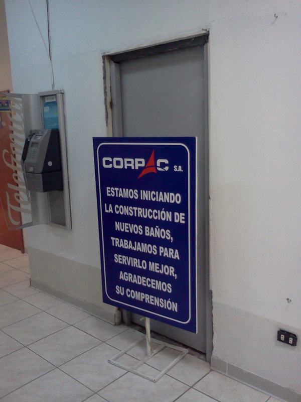 Esta es la tercera o cuarta vez que presento mi reclamo -no como periodista de turismo sino como pasajero- para que Corpac, en vez de seguir respondiendo con supuestas explicaciones que no tratan más que de encubrir la incapacidad de manejo, brinde el serrvicio que un terminal internacional que sirve a una de las nuevas siete maravillas del mundo moderno se merece. Adjunto fotografías que ilustran el tema, siendo los carteles los mismos que les vengo enviando desde hace casi dos años! .