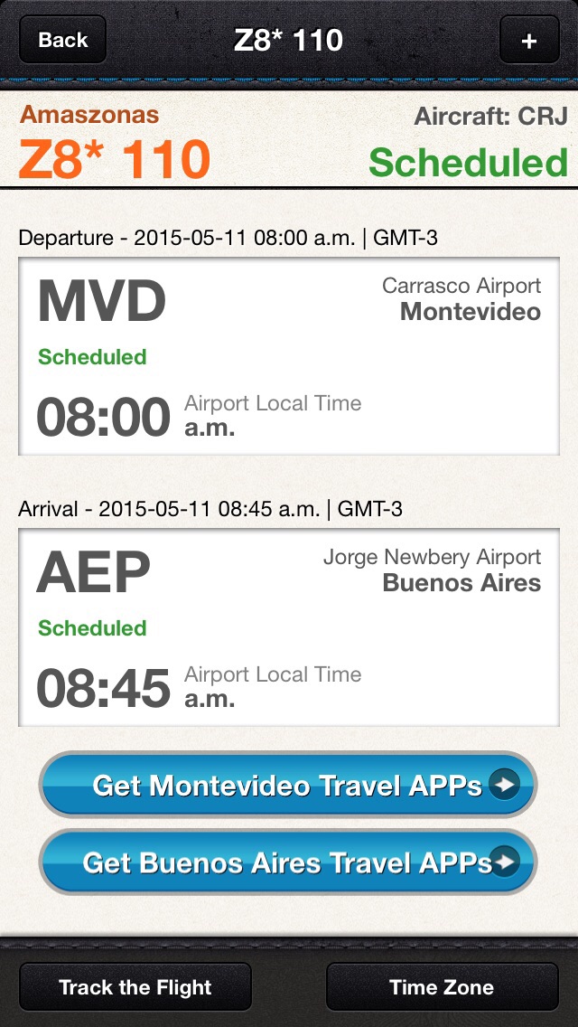Sin embargo, para este lunes 11 de mayo aparece en pantallas un vuelo Z8* 110 saliendo a las 8 de Carrasco y llegando 45 minutos más tarde a Aeroparque.
