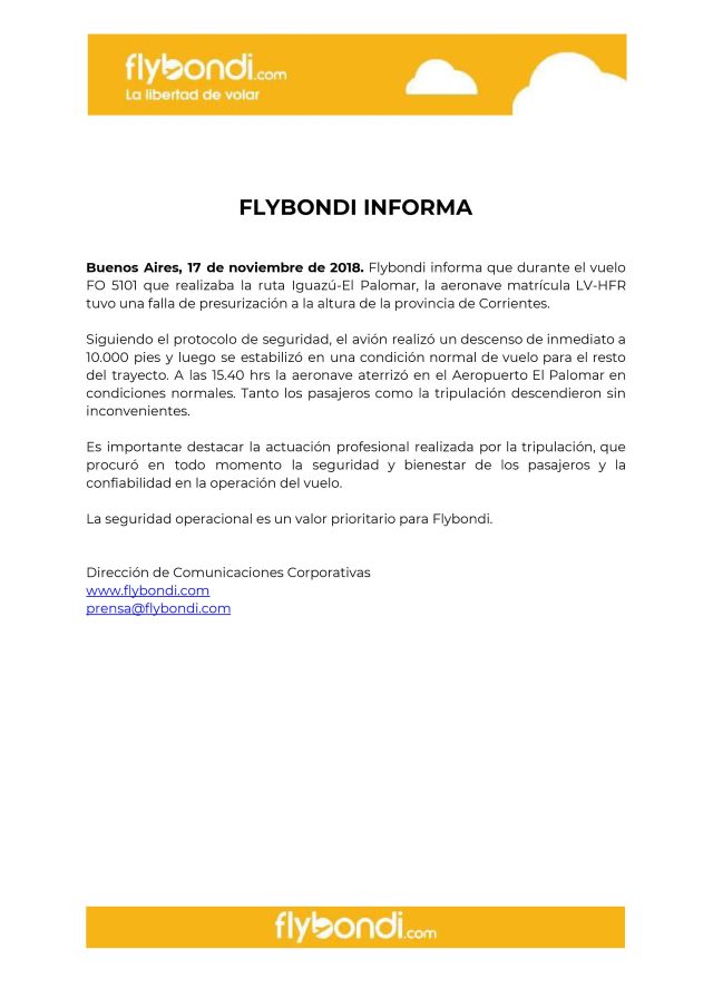 La campana oficial de la información recibida ayer. Compartimos la versión de la empresa llegada directamente a nuestra redacción indicando el Protocolo de Seguridad seguido que permitió finalizar el vuelo y aterrizar sin más inconvenientes.