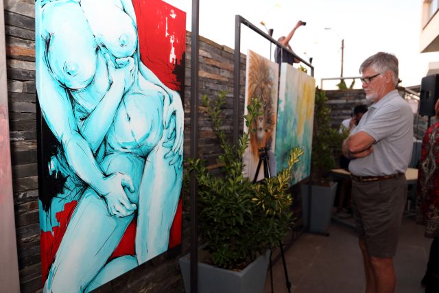 Completando la exposición se lucieron las obras de la rochense Andrea de Souza, licenciada en Comunicación, especializada en Audiovisual y Publicidad, y artista plástica. Su mirada oscila entre lo abstracto y la intervención del espacio, lo que otorga un estilo propio y diferente a sus lienzos.