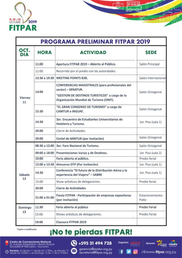 La exposición está dirigida a gente involucrada en el rubro de turismo, con charlas y ruedas negocios, y al público en general, para que conozcan los destinos que ofrece el Paraguay.