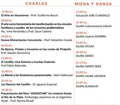 Contará con actividades en las diferentes áreas de los jardines del castillo: arte, música, moda, gastronomía, diseño, charlas, incluído un circo. Todo pensado para el disfrute familiar, individual y grupal, en un entorno natural, con variedad de entretenimientos, tanto diurnos como nocturnos, culminando en un After Music hasta el final del evento a las 2 am.