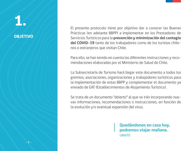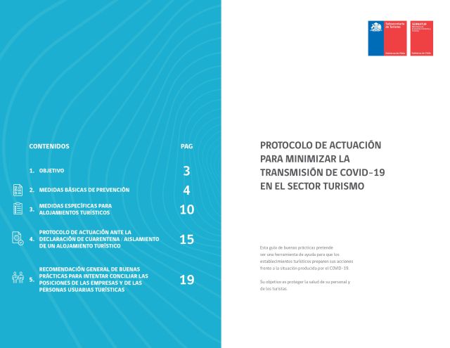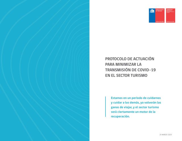 Nuestro corresponsal en Chile, David Buero, nos acaba de enviar este "Protocolo de actuación para la transmisión de COVID-19 en el sector turismo", preparado por SERNATUR teniendo en en cuenta las diferentes instrucciones y recomendaciones elaboradas por el Ministerio de Salud de Chile. Publicamos sus 19 páginas como imagen. El archivo .pdf se puede descargar AQUÍ.