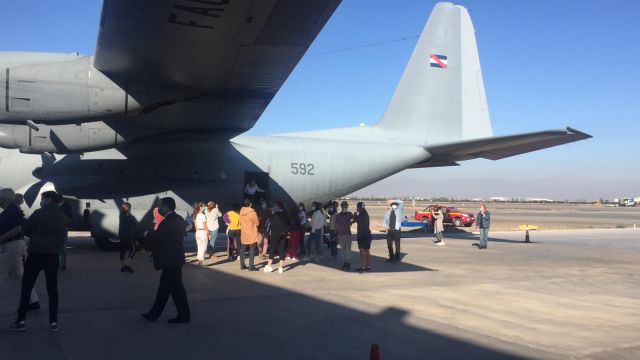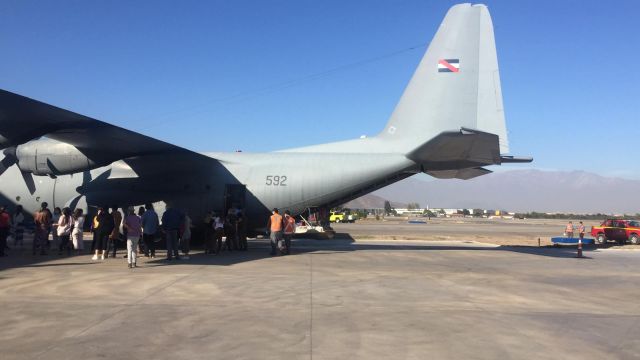 Este miércoles 29, la aeronave C-130 "Hércules" de la Fuerza Aérea Uruguaya partió rumbo a Santiago de Chile a fin de trasladar a 32 ciudadanos chilenos.