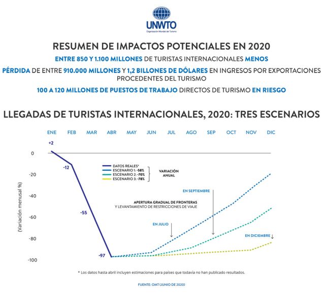 El secretario general de la OMT, Zurab Pololikashvili, afirmó: “La caída repentina y masiva en el número de turistas amenaza a empleos y economías. Es vital que el reinicio del turismo sea una prioridad y se gestione de manera responsable, protegiendo a los más vulnerables y con la salud y la seguridad como la principal preocupación del sector. Hasta el reinicio general del turismo, la OMT vuelve a pedir un fuerte apoyo al sector para proteger empleos y empresas. Por lo tanto, acogemos con beneplácito los pasos tomados, tanto por la Unión Europea como por países individuales, incluidos Francia y España, para apoyar el turismo económicamente y construir las bases para la recuperación.”