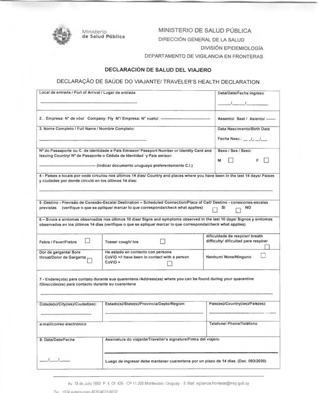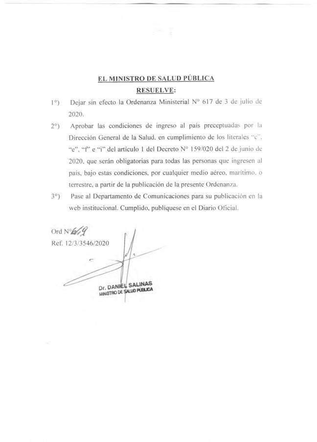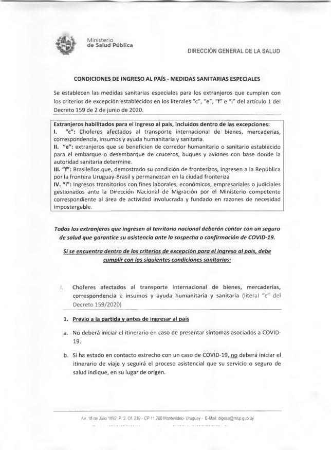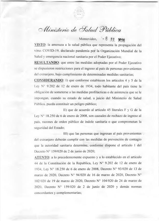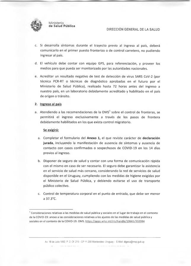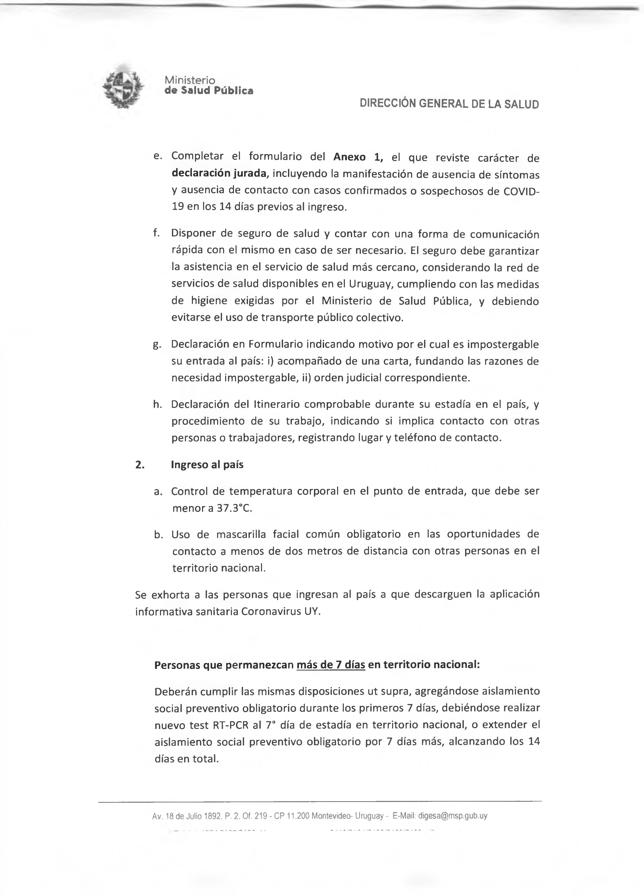El Ministerio de Salud Pública uruguayo acaba de emitir la Ordenanza que regirá desde ahora los controles y las medidas sanitarias que regirán para el ingreso de personas al país, así como cuáles son las excepciones además de los uruguayos y residentes legales. El texto completo.