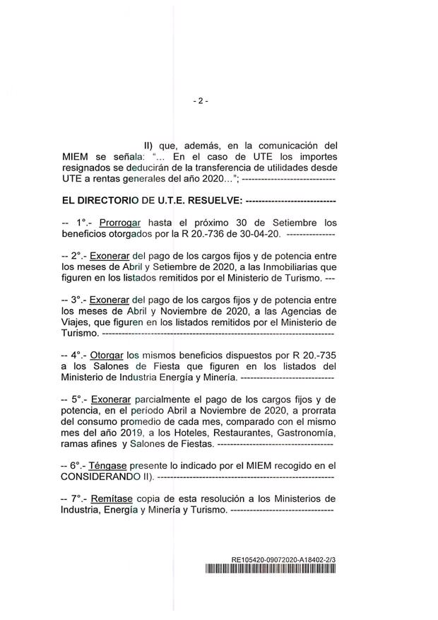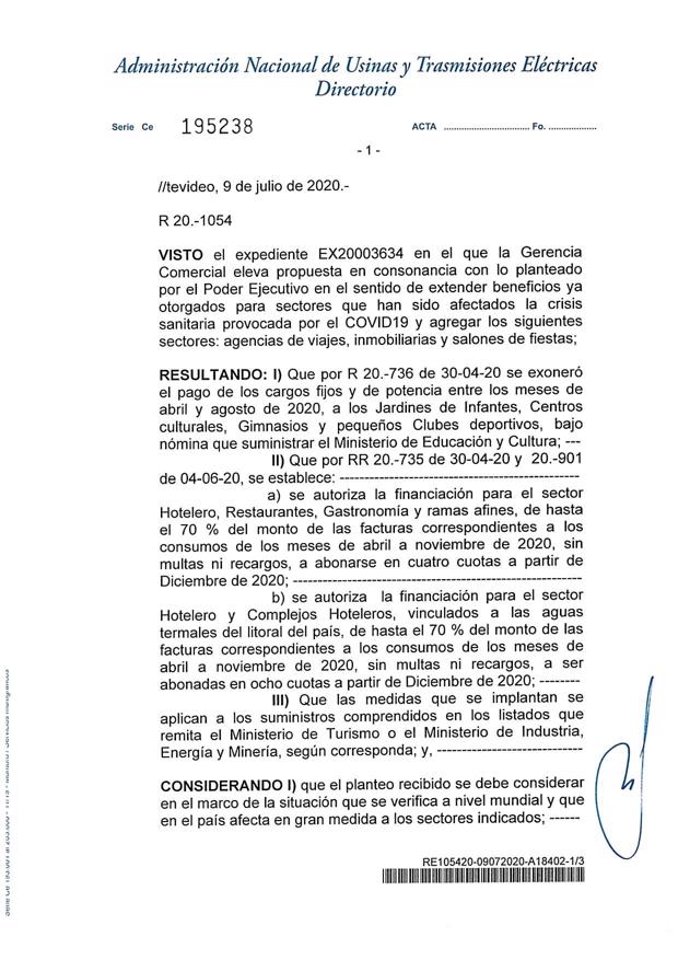 UTE, la empresa estatal uruguaya que genera y distribuye la energía eléctrica, extiende y amplía las exoneraciones en cargos por electricidad para los sectores de actividad que se han visto más afectados por la pandemia de Covid-19, lo que incluye a la mayor parte de la industria turística. Compartimos el Acta de Directorio correspondiente.