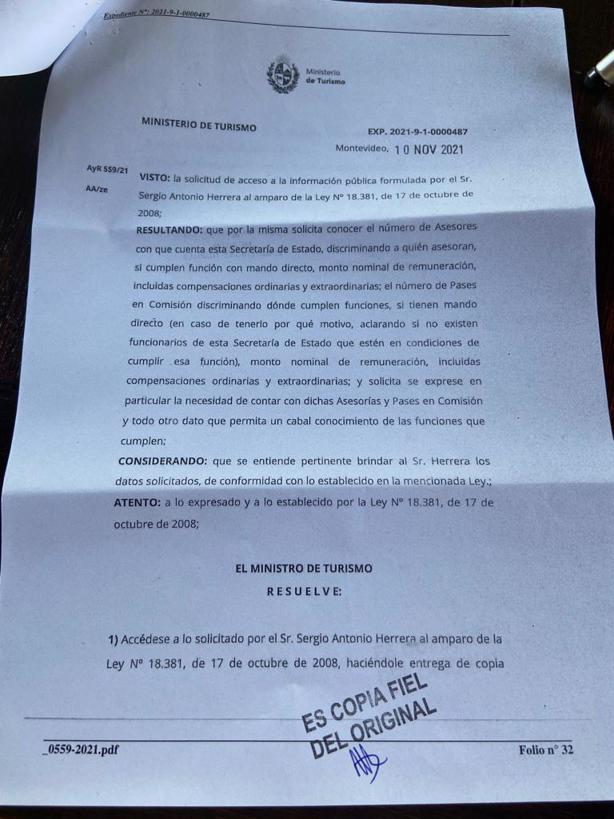 La respuesta recibida es la siguiente: