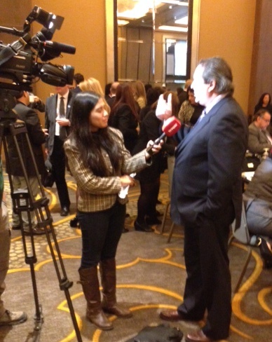 Sergio Baritussio entrevistado por la televisión peruana, anoche en el Hilton Miraflores